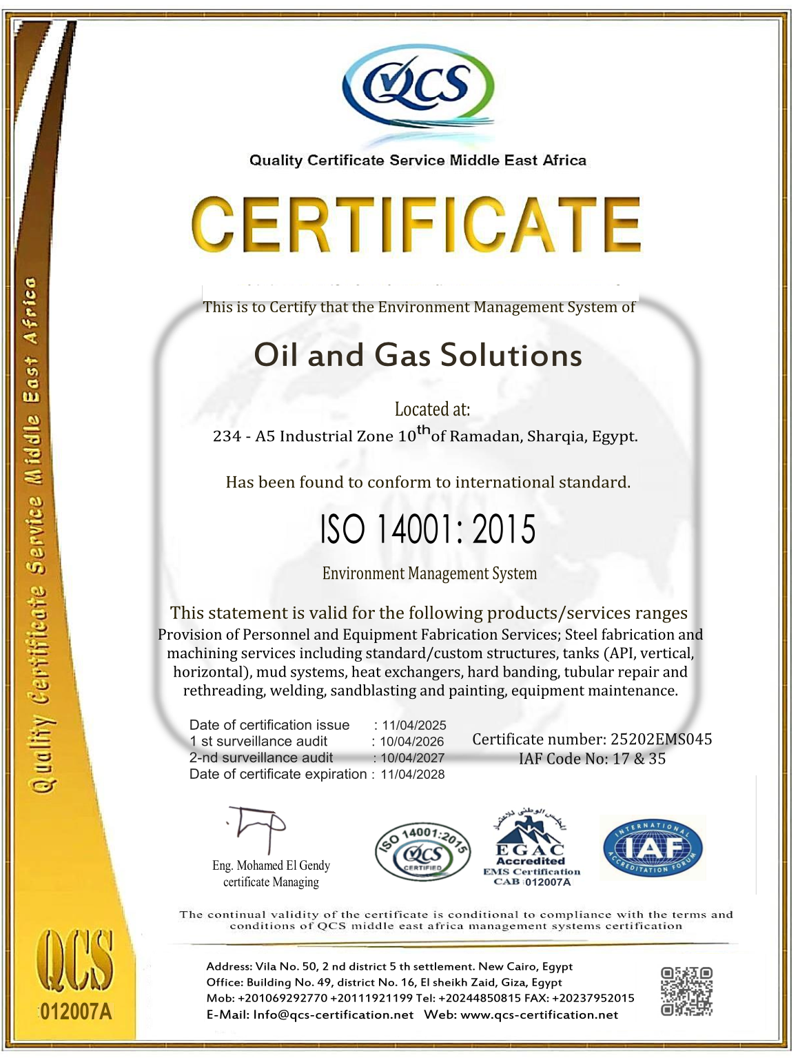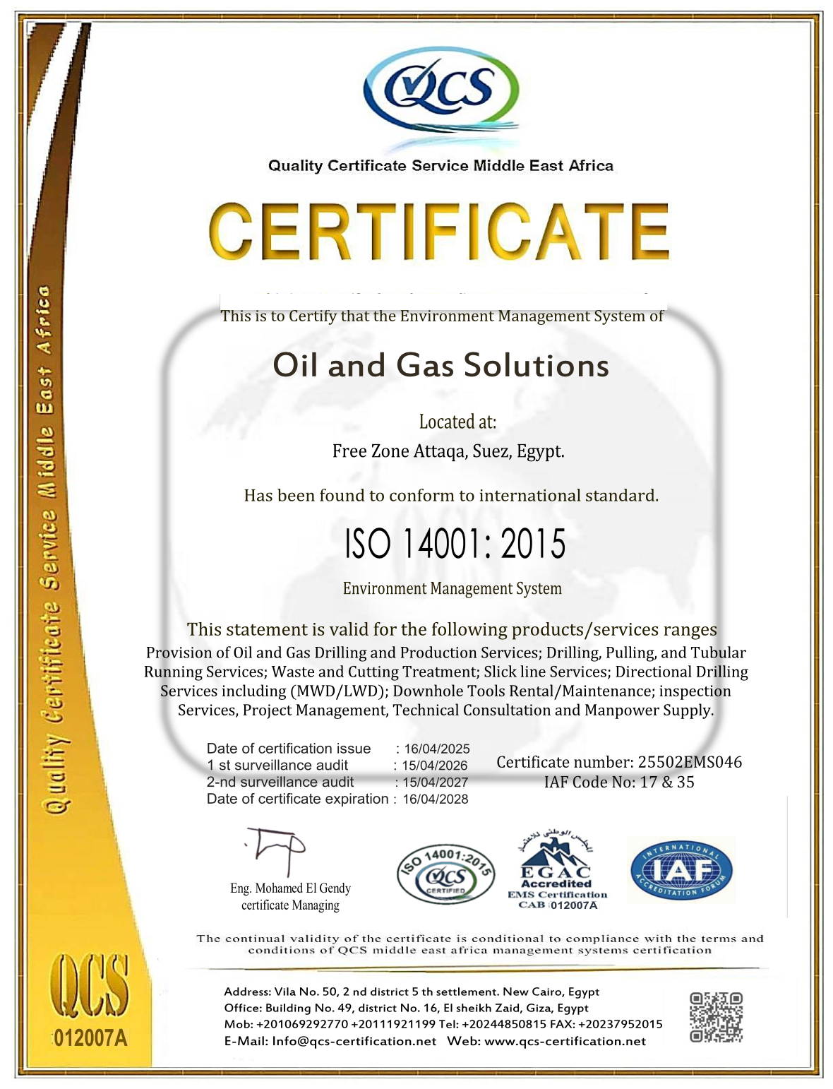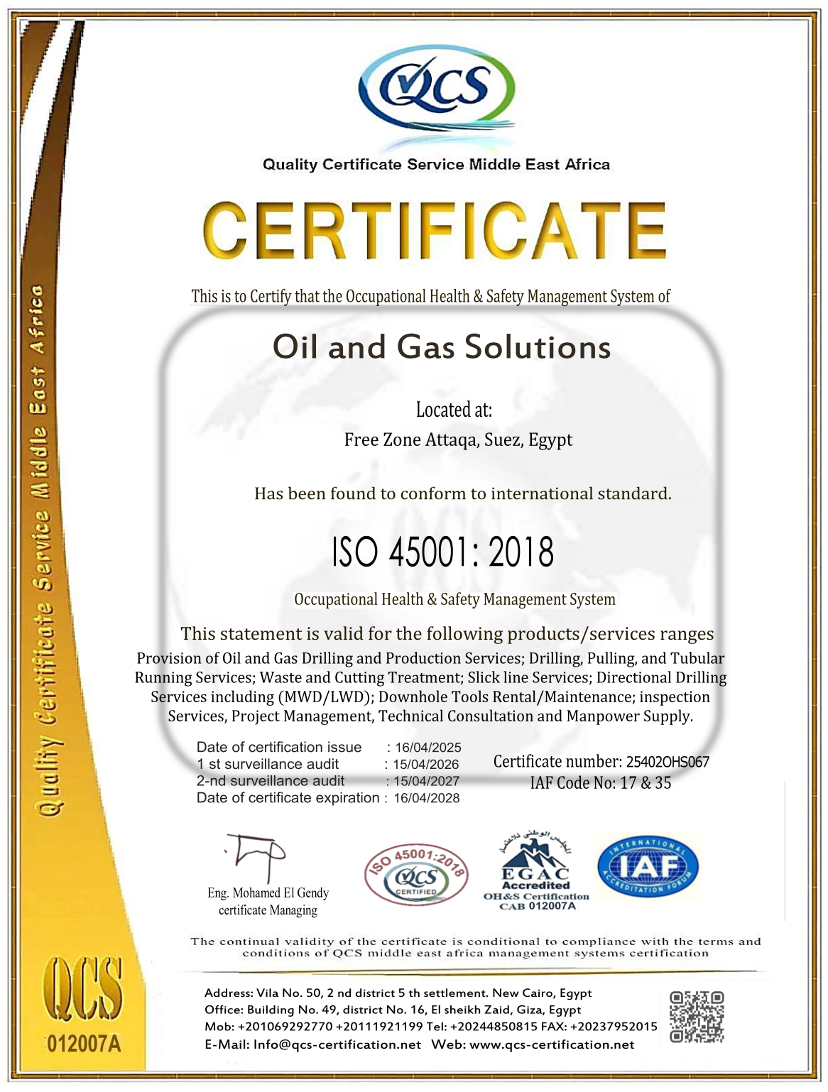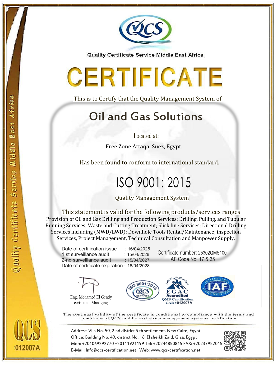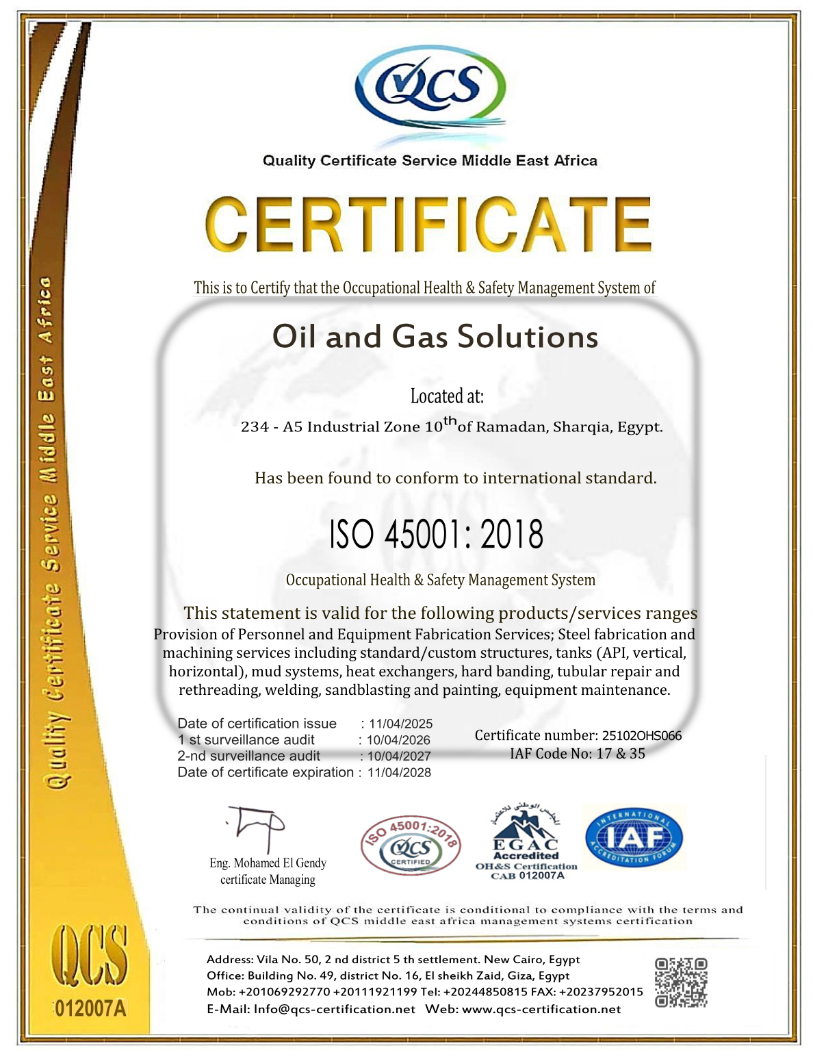 - Certifying Body: QCS - Quality Certificate Service Middle East Africa